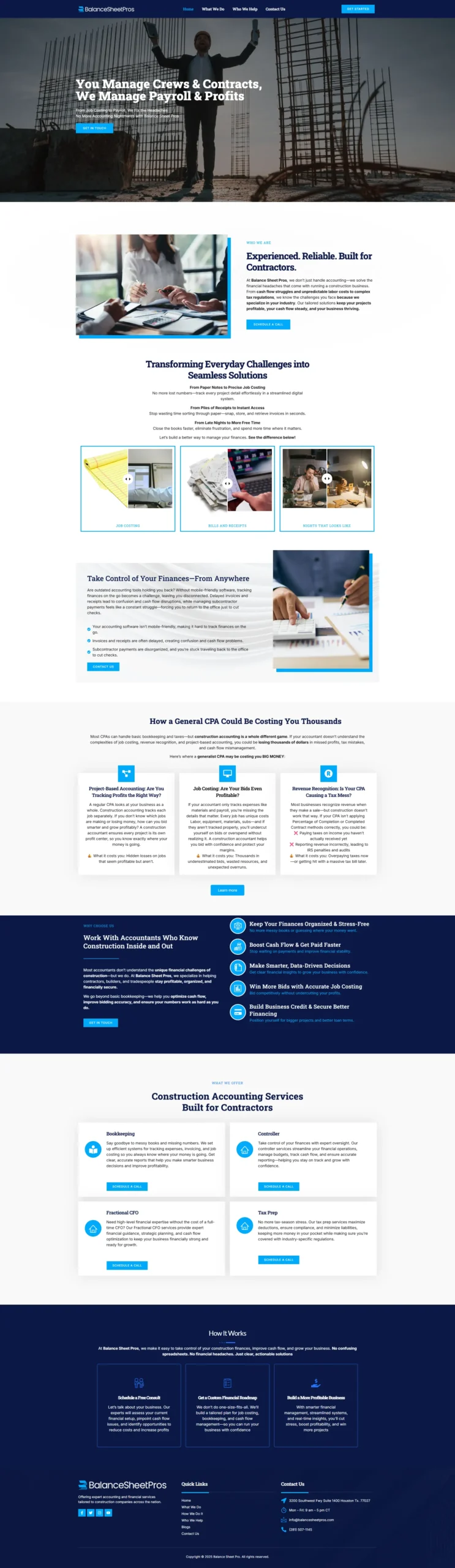 Balance Sheet Pros — Accounting & Financial Management Website for Contractors