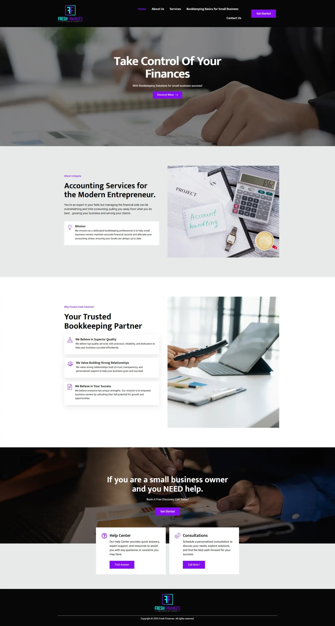 Fresh Finances — Bookkeeping Website for Food Service Businesses